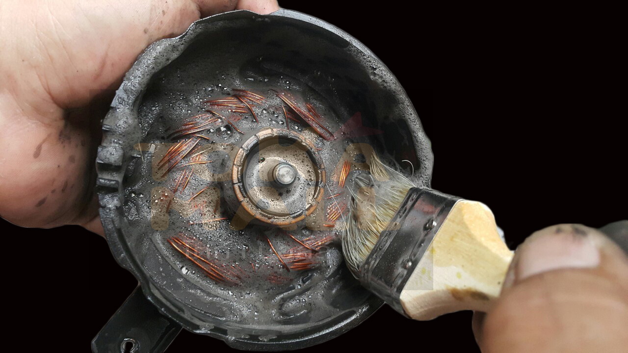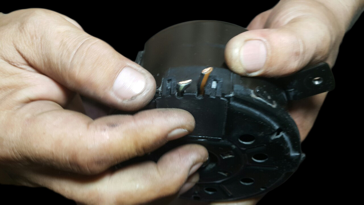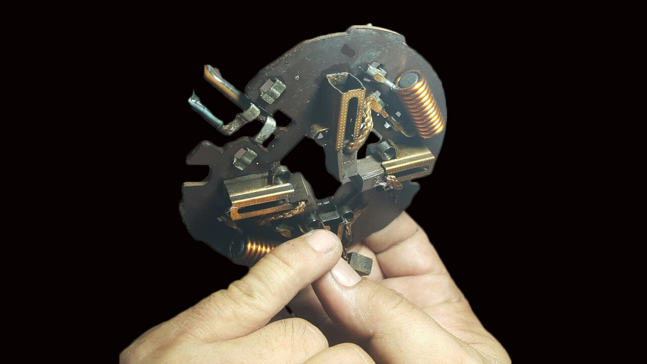 ขั้นตอนที่ 10 นำแปลงถ่านตัวใหม่ใส่แทนที่เดิม ใช้หัวแร้งตะกั่ว ฝัก เชื่อมสายไฟเข้าตำแหน่งเดิม ข้อควรระวัง แผ่นดันแปลงถ่านให้คว่ำลงในล็อค ตามรูป ทั้ง 4 ก้อน
