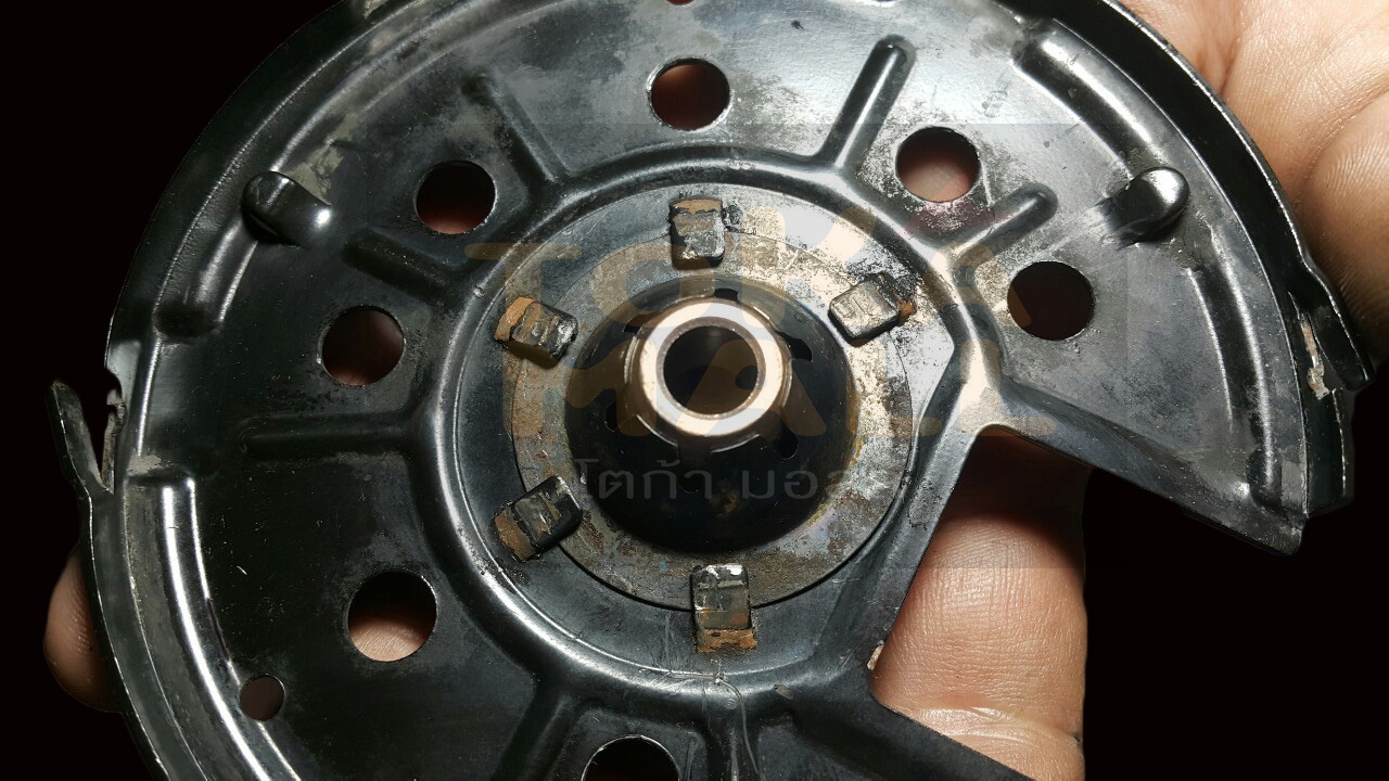 ขั้นตอนที่ 6 ใช้ปากแบนงัดตัวล็อคโครงบูท ถอดโครงครอบบูท และถอดบูทเก่าออก เจ้าตัวนี้แหละที่ทำให้พัดลมแกว่งเนื่องจากบูทสึก ส่วนแปลงถ่านกินไม่เท่ากัน ก็ทำให้พัดลมหมุนๆหยุดๆ แรงบ้างไม่แรงบ้าง อาการแบบนี้แปลงถ่านใกล้หมดเลยทำให้แตะแกนบ้างไม่แตะบ้าง ถอดออกมาแล้วเปลี่ยนไปเลยทีเดียวครับ